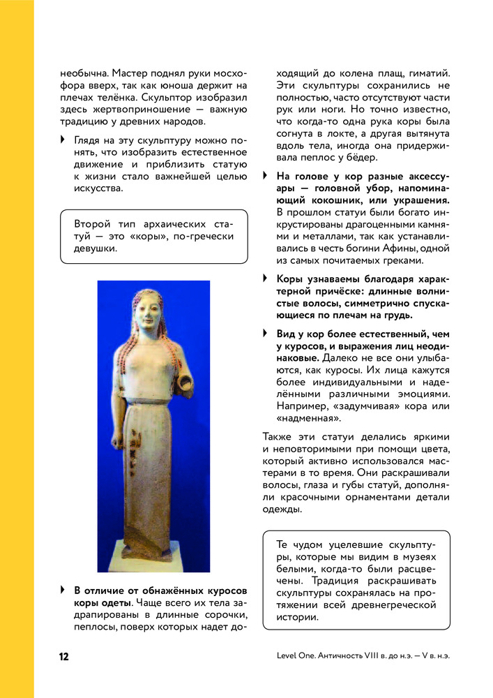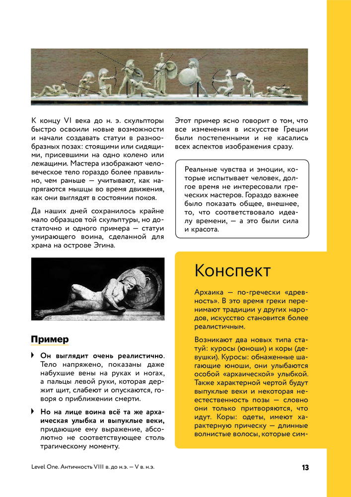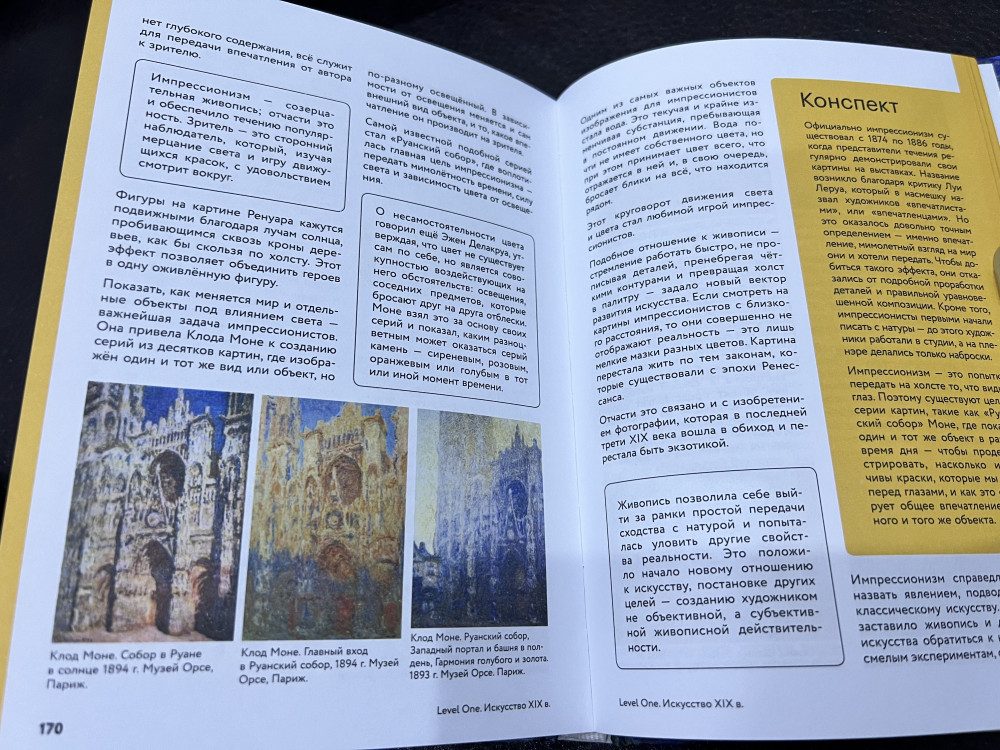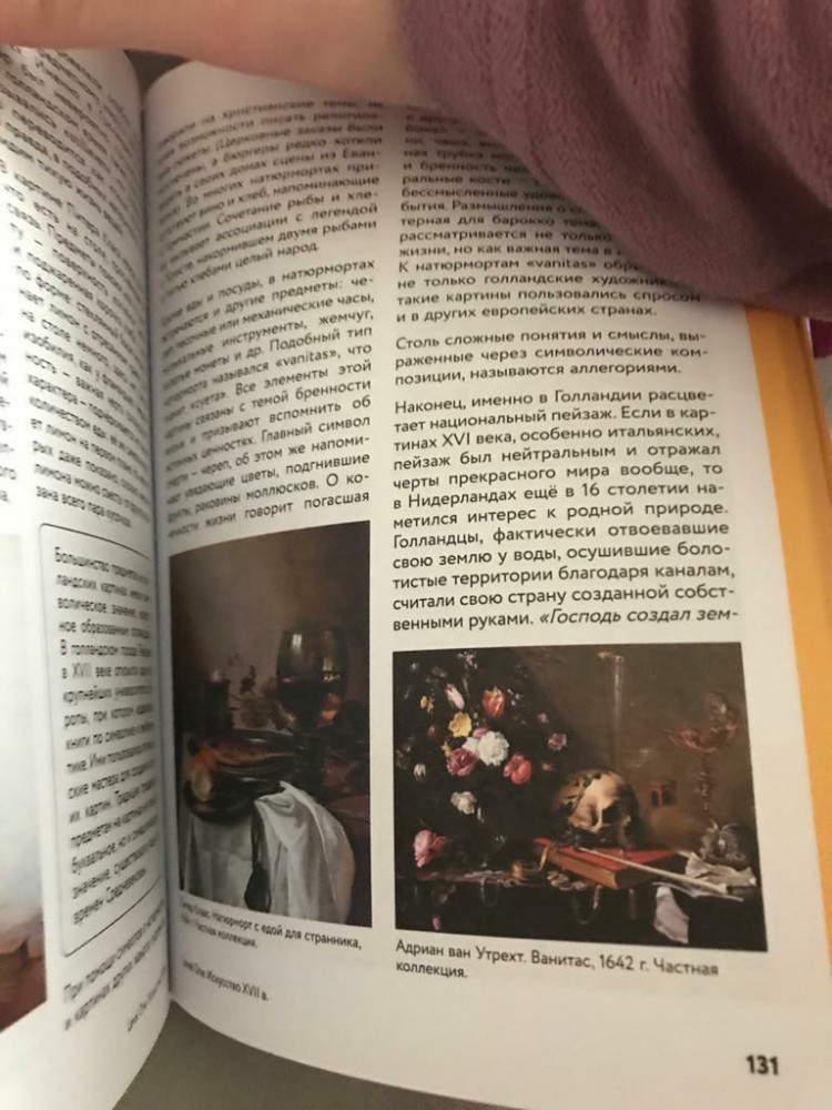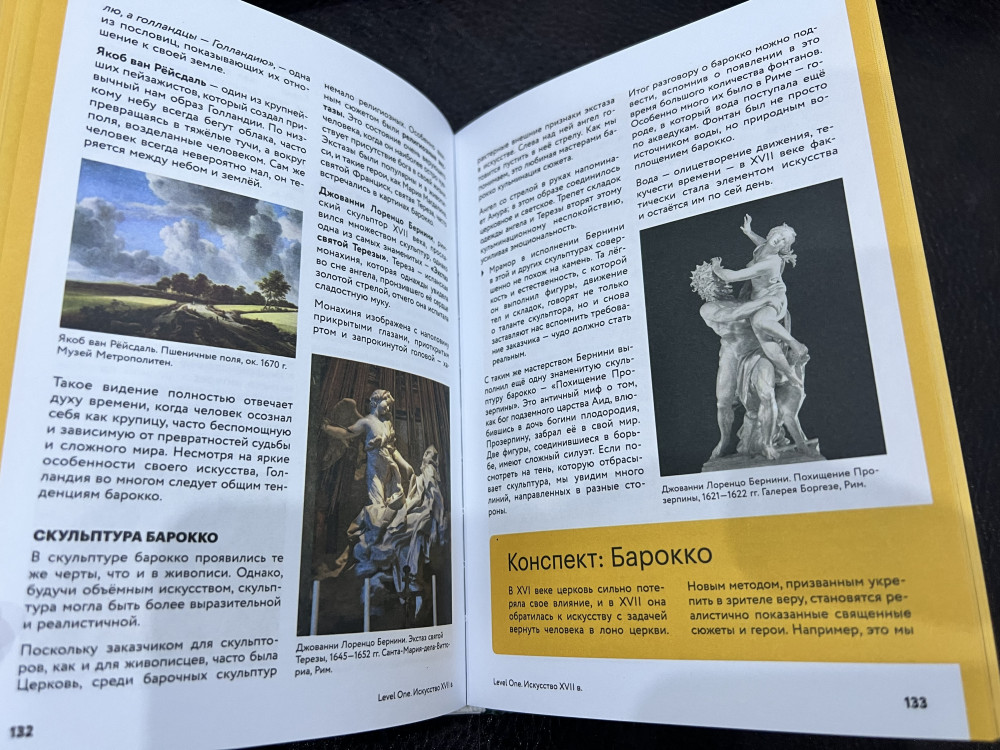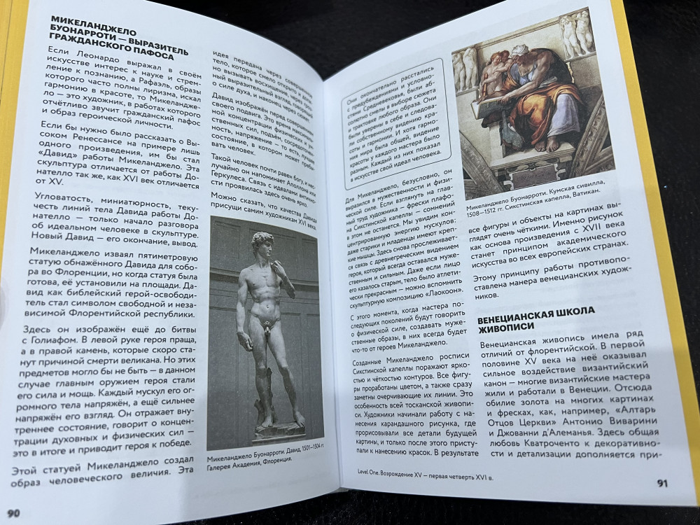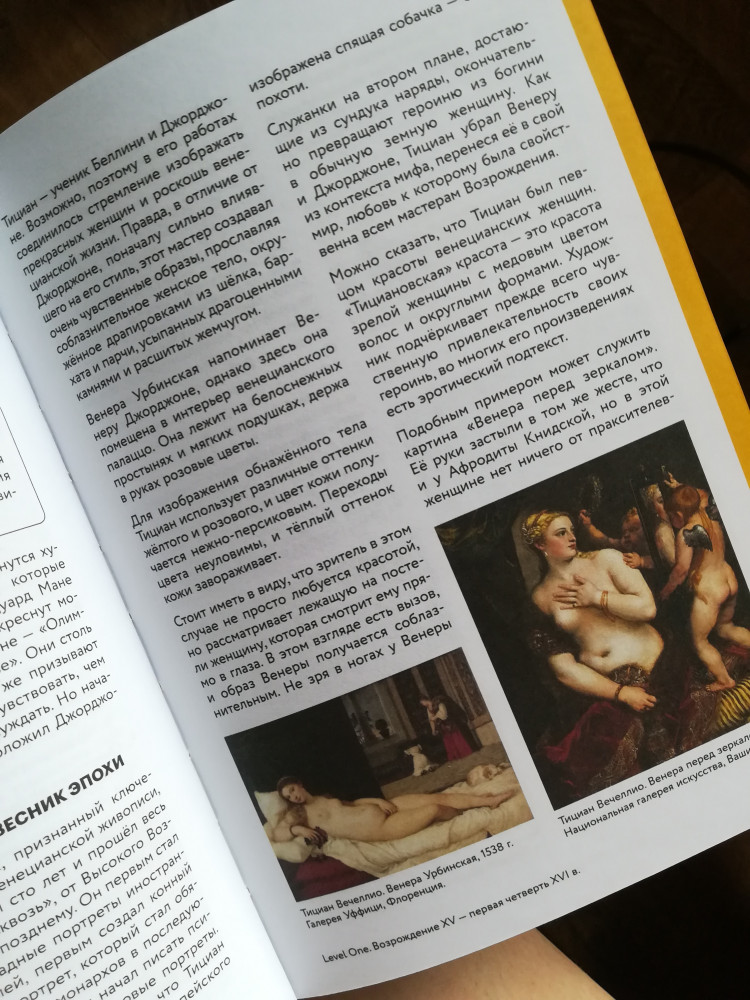 Из-за названия «История искусств» я ожидала, что там будут не только статуи и художественные картины, а плюс к этому что-то из индустрии кино, музыки и т.д. Да, в книге говорится о том как какой-то вид деятельности оказал влияние на ту или иную картину, статую, но не больше. К сожалению, я ошиблась. В целом книга неплохая. Всё на доступном понятном языке и даже в конце к каждому разделу добавлены конспекты. Таким образом удобно составлять итог к прочитанному разделу. Бумага неплохого качества. Картины красивые. Книга интересная. Не пожалела о приобретении