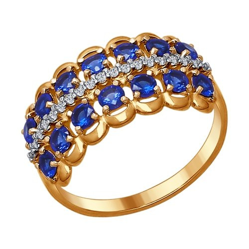 SOKOLOV Кольцо из золочёного серебра с бесцветными и синими фианитами