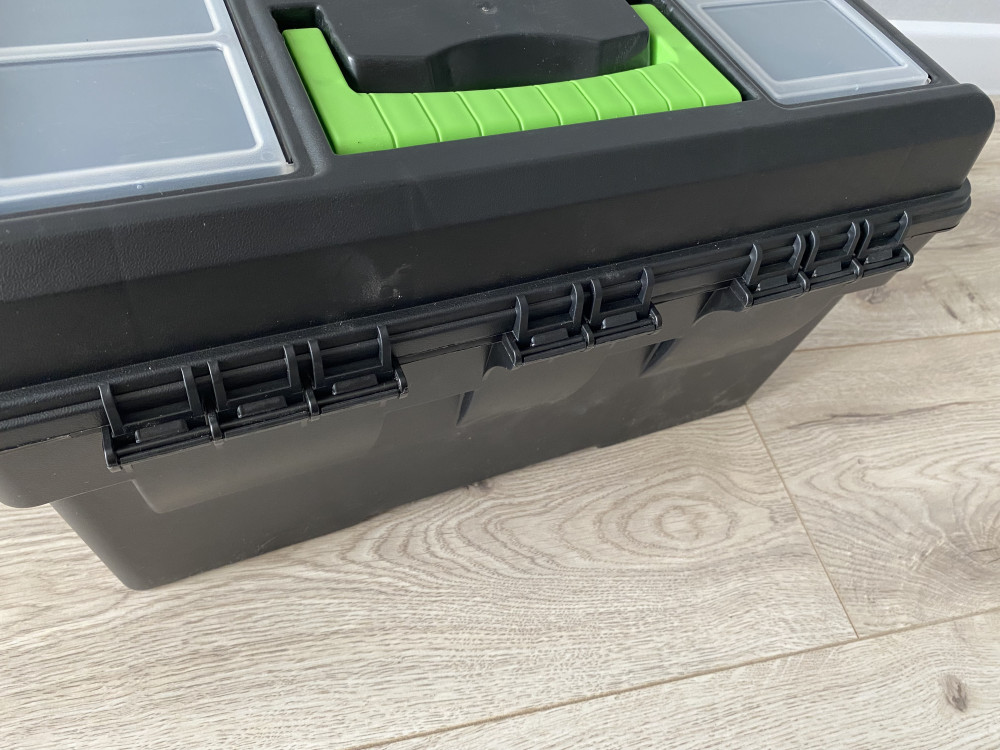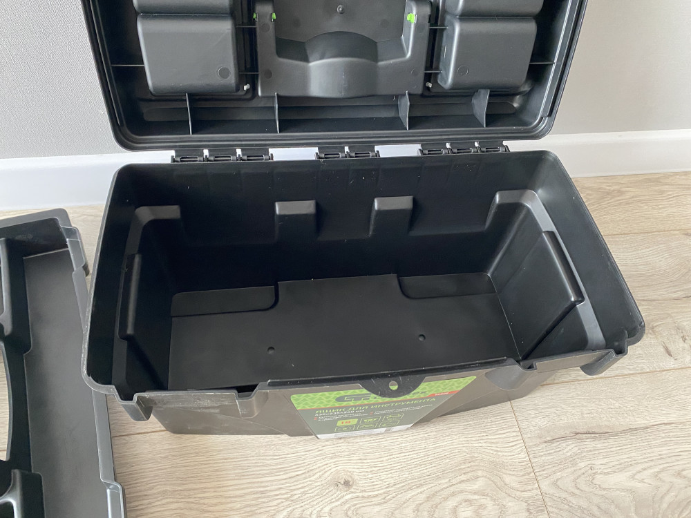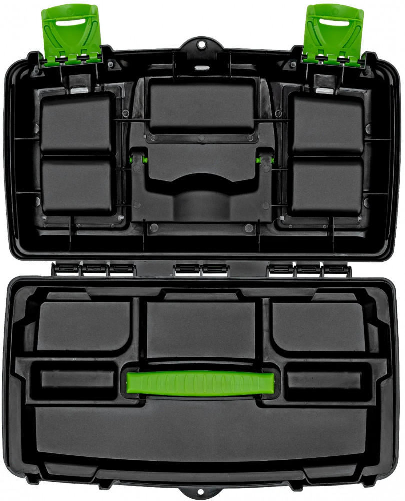 Прочный и удобный ящик Сибртех идеально подходит для хранения и переноски инструментов, домашних мелочей, рыболовных принадлежностей. Может использоваться в качестве подставки. Усиленная конструкция пластикового замка предотвращает непроизвольное распахивание крышки. Внутренний лоток дает возможность разделить ящик на две части, а встроенные органайзеры в крышке отлично подойдут для размещения мелких деталей. |