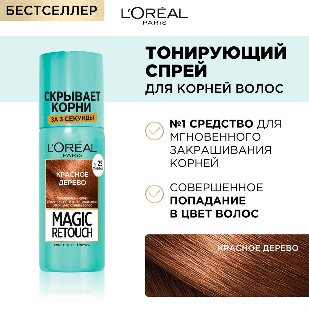 L'Oreal Paris Тонирующий спрей для мгновенного закрашивания отросших корней «Magic Retouch», оттенок Красное дерево