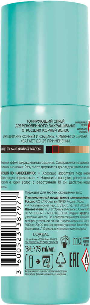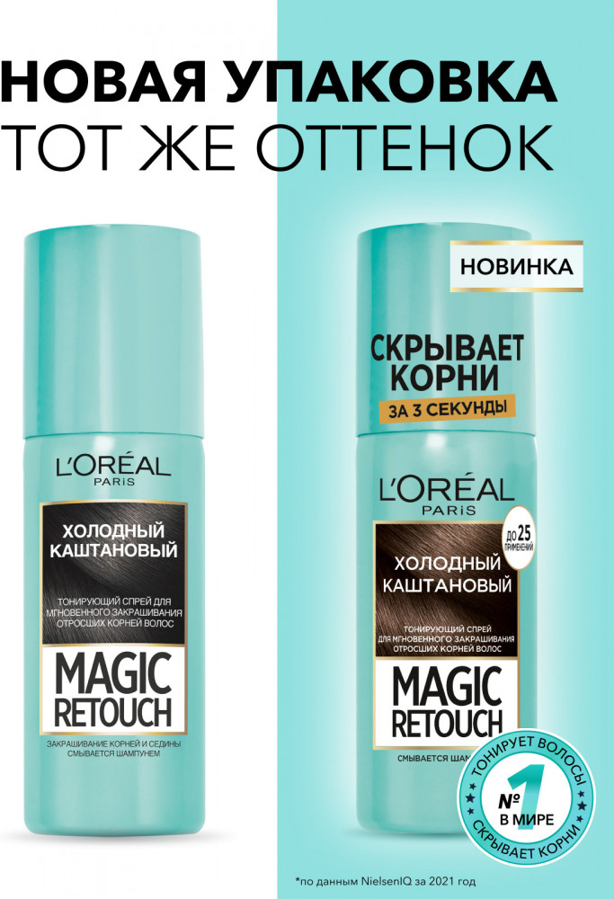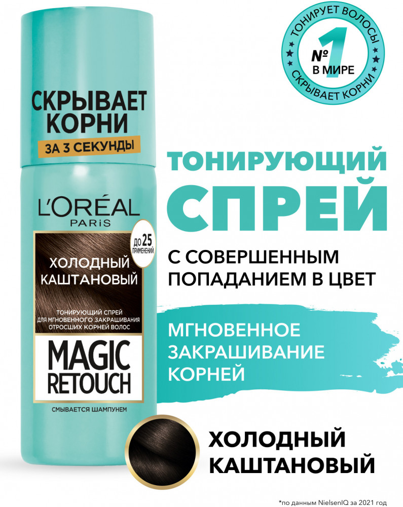L'Oreal Paris Тонирующий спрей для мгновенного закрашивания отросших корней «Magic Retouch», оттенок Холодный каштановый