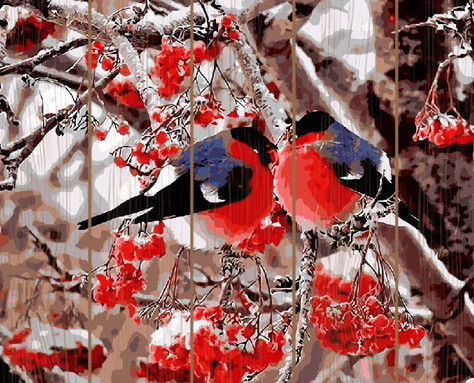 Отзывы «Картина по номерам на дереве «Cнегири» (40×50 см)»