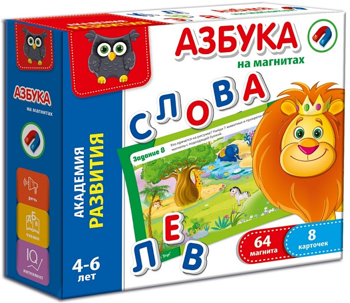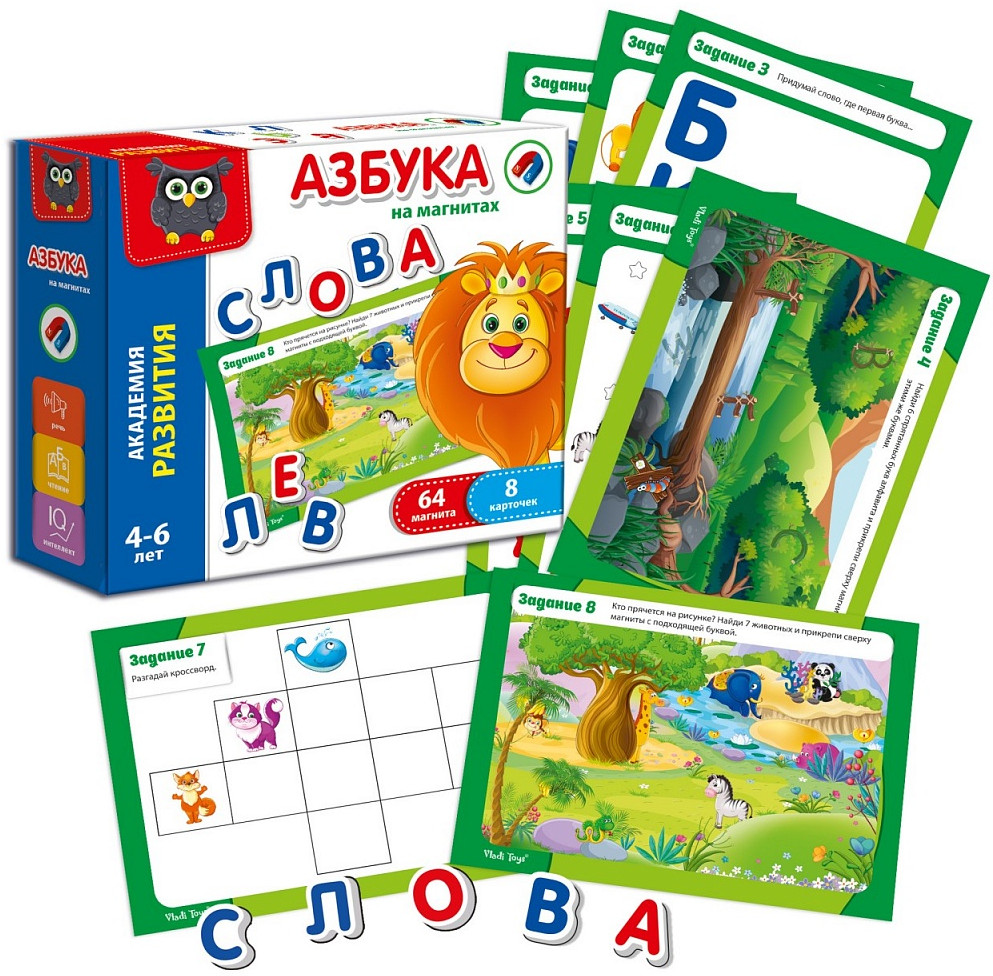 Vladi Toys Игра развивающая «Азбука на магнитах»В данный момент этот товар отсутствует в продаже. Возможно, у нас найдется аналогичный или похожий товар здесь. Серия: Академия развития Гласная или согласная? Какое слово? Магнитные буквы помогут ребенку освоить азбуку! На карточках есть задания. Они будут служить цветным пособием и помогут маме самостоятельно проводить занятия. Общайтесь с помощью магнитов, оставляйте друг другу сообщения на холодильнике. Употребляемые буквы дублируются. Магниты имеют объем. Они легкие и мягкие. С игровым набором малыш быстро запомнит названия букв, научится составлять слова и разовьет внимание. |