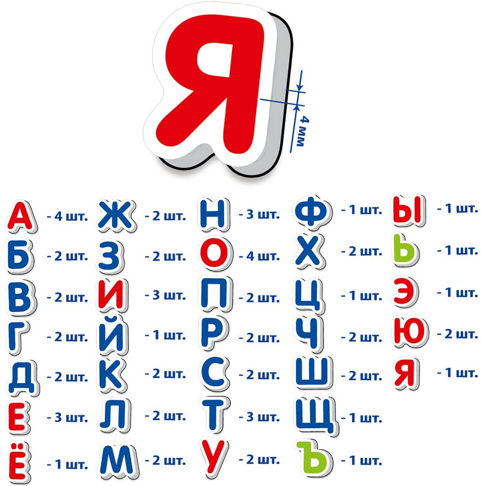 Буквы изготовлены из плотного материала, яркие цвета.