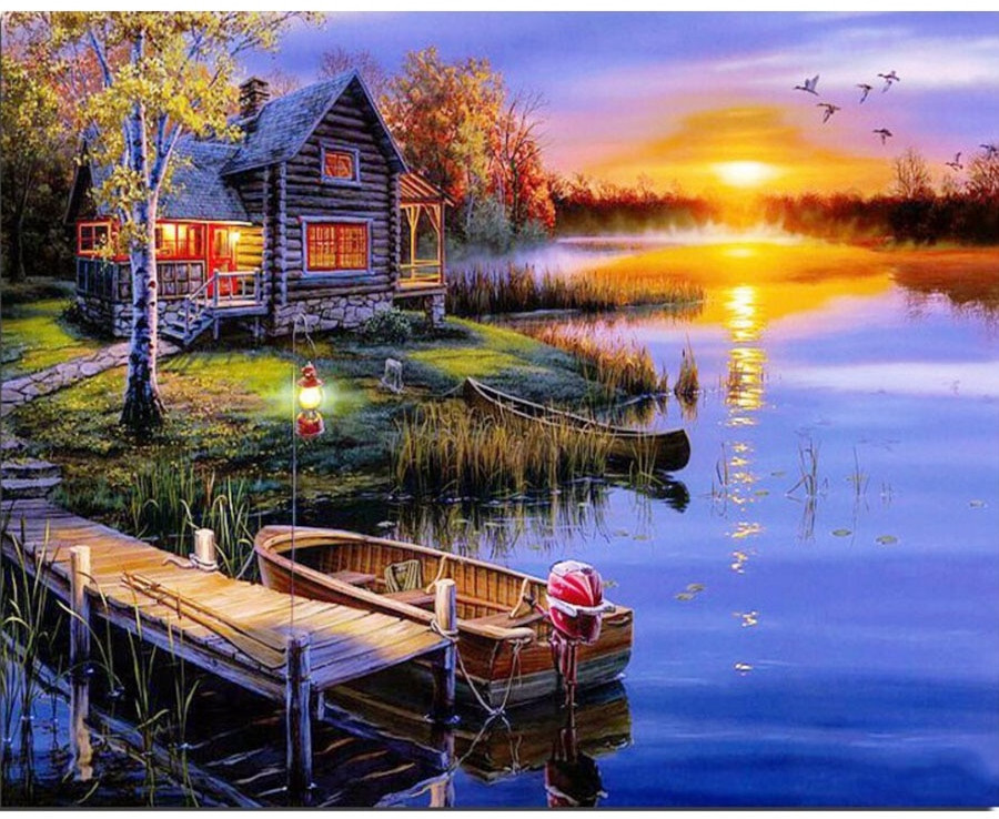 Отзывы «Алмазная мозаика «Закат на озере» (без подрамника, с полным заполнением)»