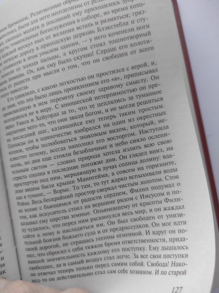 Ощущение, будто прожила полжизни главного героя: с раннего детства до взрослости. Вместе с ним грустила и радовалась. Моэм тонко описывает душевные терзания Филипа касательно физического недостатка, религии, любви, дружбы, денег. Автор делится философскими взглядами на те или иные вещи через своих персонажей, будь то искусство или смысл жизни. Особенно рекомендую молодежи, которого только-только вступает во взрослую жизнь.