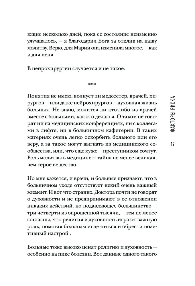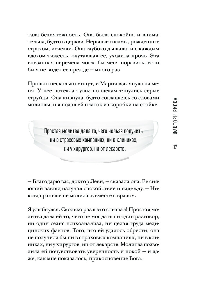 Молитва нейрохирургаВ данный момент этот товар отсутствует в продаже. Возможно, у нас найдется аналогичный или похожий товар здесь. Серия: Религиозный бестселлер «Требуются огромная смелость и невероятная сила духа, чтобы открыто обсуждать темы, затронутые в этой книге, в профессиональном сообществе медиков, известном своей циничностью. Репутационные ставки здесь невероятно высоки». — Джордан Зиглер, доктор медицины «Доктор Леви — прекрасный нейрохирург и настоящий профессионал. Когда он рискнул ввести Бога в уравнение „доктор-пациент“, то нарушил негласное „табу“ — и сделал это во благо больных и их семей». — Чарльз Кербер, доктор медицины, профессор радиологии и нейрохирургии «Нейрохирургия — это невероятный стресс как для больных, так и для врачей. И хорошо, что в своей книге Дэвид Леви, признанный мастер, показывает нам, как духовность может избавить нас от этого жуткого напряжения — и в то же время позволяет читателям взглянуть на мозг и его возможности с очень интересного ракурса. Я восхищен тем, что мой коллега так смело выступил в защиту единства веры и разума». — Бенджамин С. Карсон-старший, доктор медицины |