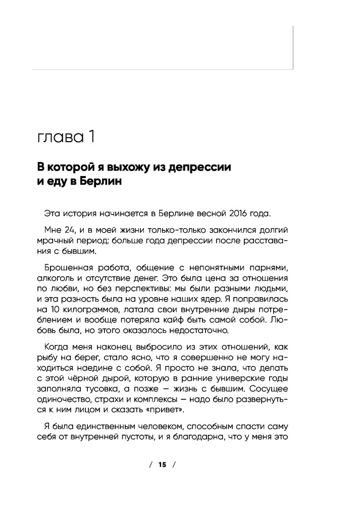 Автор говорит о женском теле, отношениях, сексуальности, комплексах и страхах без стеснения и табу. Это как разговор с близкой подругой – искренний, доверительный, без осуждения. В книге поднимаются темы, о которых в обществе часто не принято говорить вслух, но которые важны для каждой женщины. Понравилось, что стиль повествования лёгкий, живой, с юмором, но при этом информативный. Автор не навязывает мнения, а просто делится наблюдениями и опытом, давая возможность читательницам задуматься и сделать свои выводы. Книга помогает лучше понять себя, принять свою природу и избавиться от многих навязанных стереотипов.
