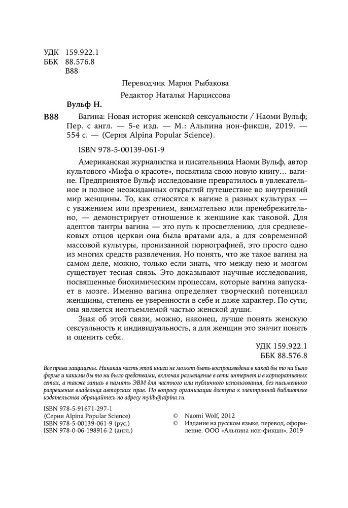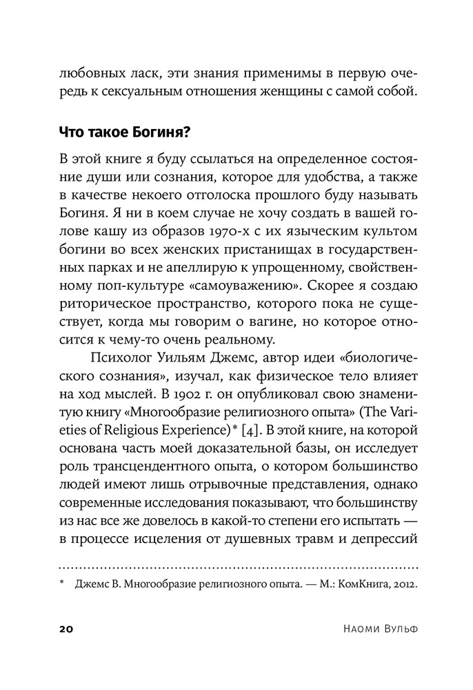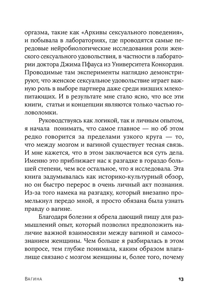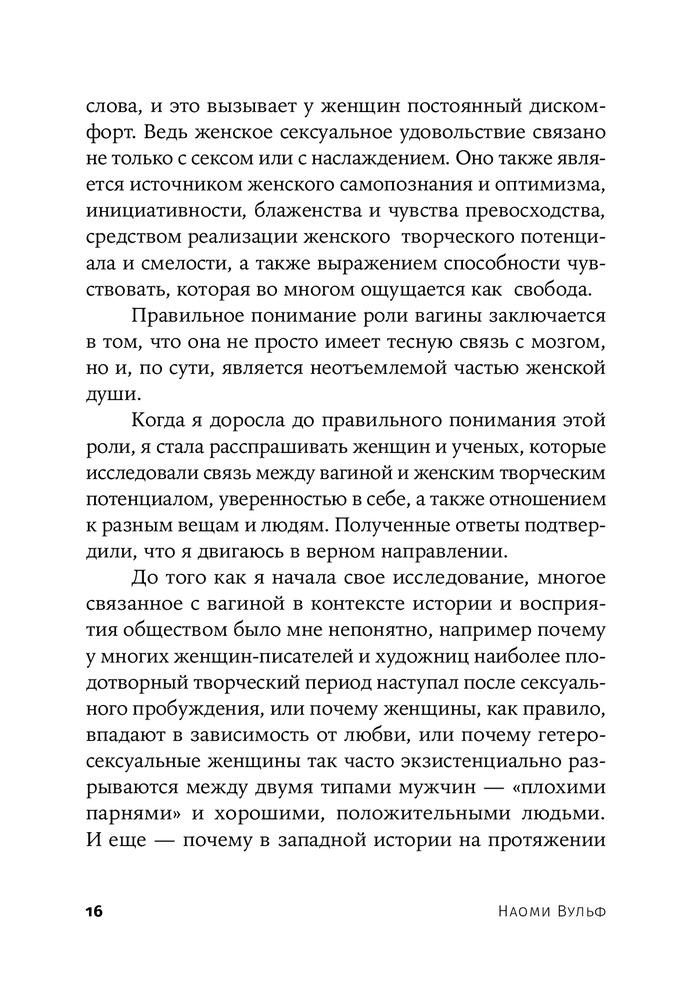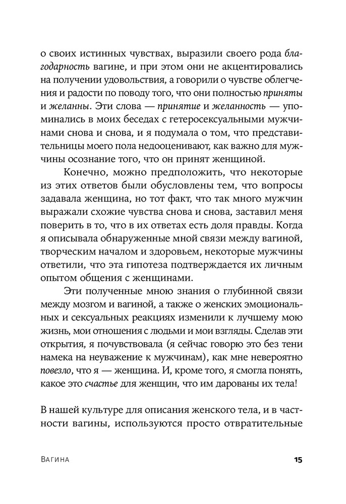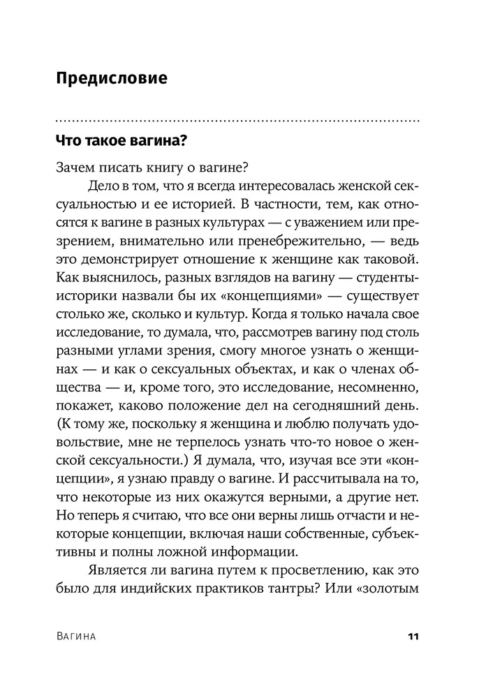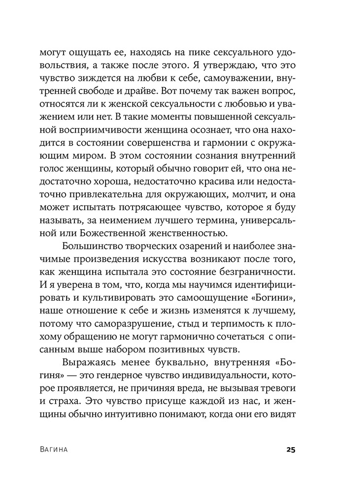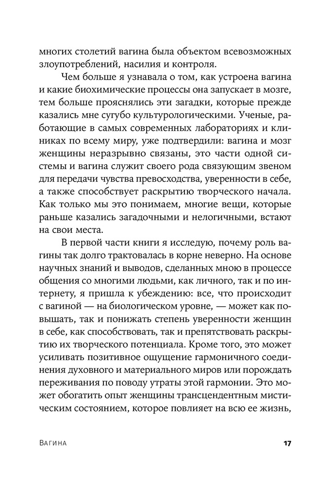Книга удивительная😍 читая каждую страницу начинаю себя понимать и изучать… каждая глава по своему интересна, в книге глубоко объясняется тема вагина с того века до нашей сегодняшней эры какую роль играет и насколько важна это часть!