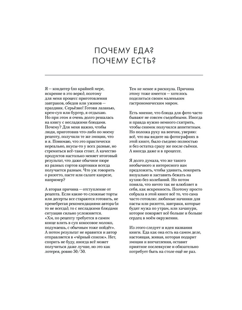 Книга очень красивая, рецепты в большинстве, доступные. Очень приятно держать в руках, рассматривать. Автор по-особенному относится к процессу приготовления, ингредиентам и это чувствуется. Спасибо flip.kz за быструю доставку и хорошую цену.