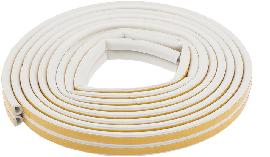 Универсальный уплотнитель белого цвета из вспененной резины EPDM, с уже нанесенным клеящим составом. Предназначен для уплотнения зазоров 3-7 мм в рамах окон и дверей, с целью предотвращения подсосов воздуха, пыли и защиты от шума. Образующаяся воздушная камера обеспечивает дополнительную шумо- и теплоизоляцию. Клеящий слой защищен от высыхания и смазывания бумажной лентой. При удалении не повреждает окрашенную поверхность. Хорошая адгезия клеящего слоя.
