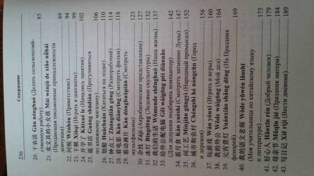 В книге содержится 53 рассказа на современные темы: досуг, встречи, праздники и т. п. Один рассказ буквально занимает 2-3 страницы. Отдельно идет запись иероглифами, отдельно пиньинем, есть пояснения, в конце текст без пиньиня для проверки себя. Приятно, что нет устаревших слов. Газетная бумага - это и плюс, и минус, в такой книге не жалко делать заметки. Аудио можно скачать на сайте vkn-press.ru