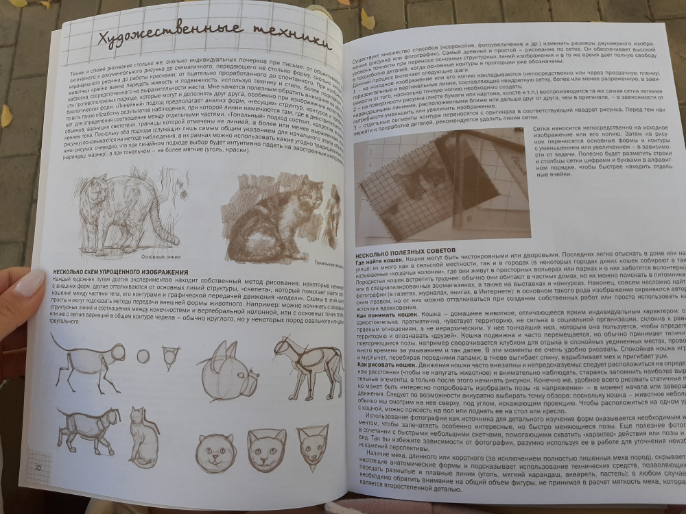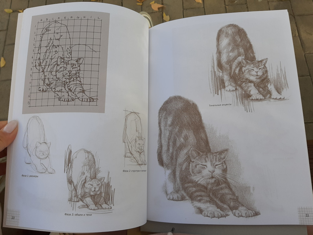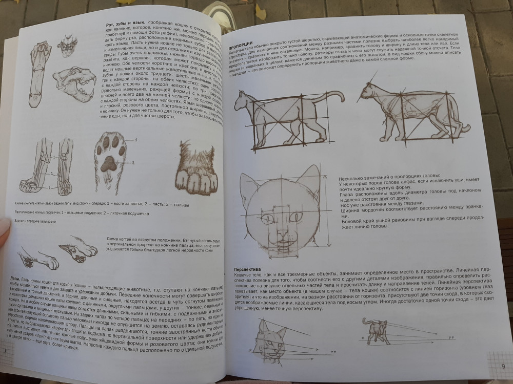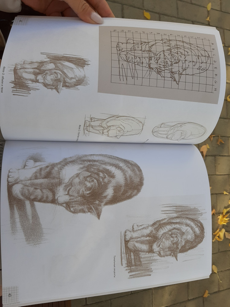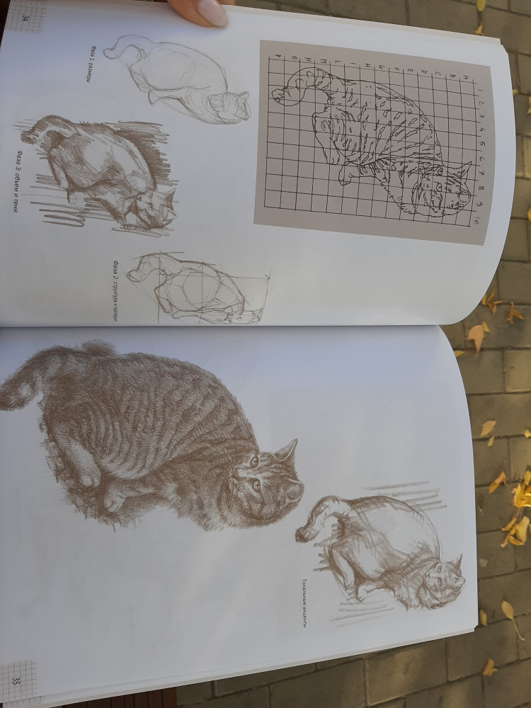 Интересная книжка. Большая, но не толстая, 80 плотных страниц. Анатомия, пропорции кошки, техники рисования.