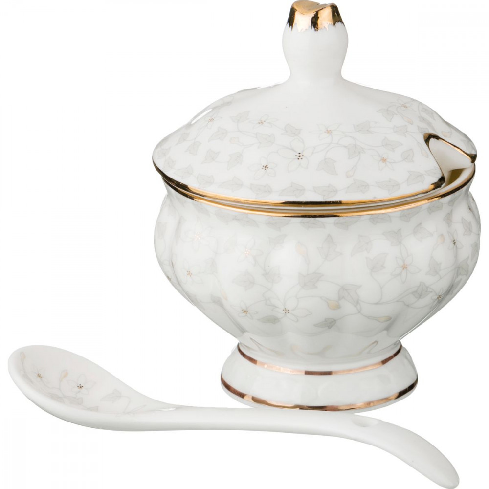 Сахарница на ножке изготовлена из фарфора высокого качества и украшена красивым оформлением. Сахарница закрывается крышкой, а также имеет удобную ложечку. Фарфоровая сахарница несомненно впишется в любой интерьер благодаря лаконичному дизайну, натуральным материалам и высокой функциональности. Такому подарку будет рада любая хозяйка!