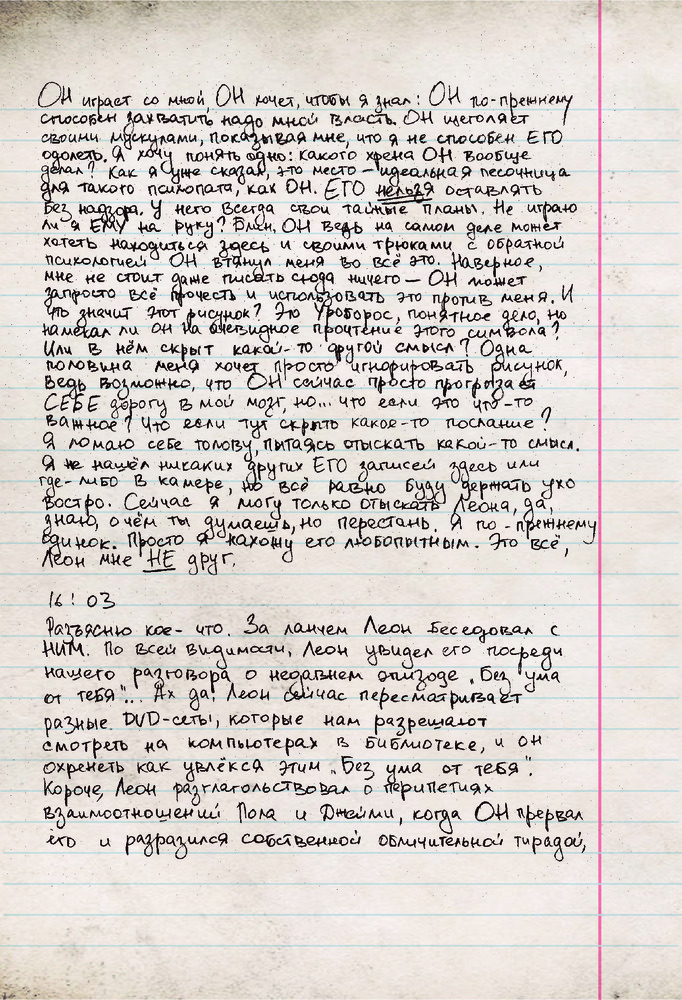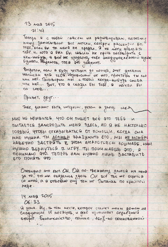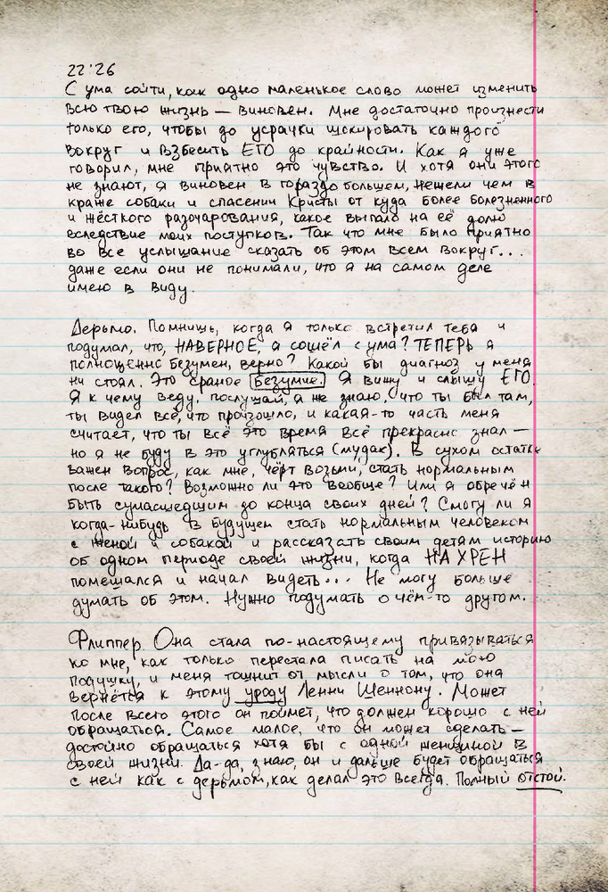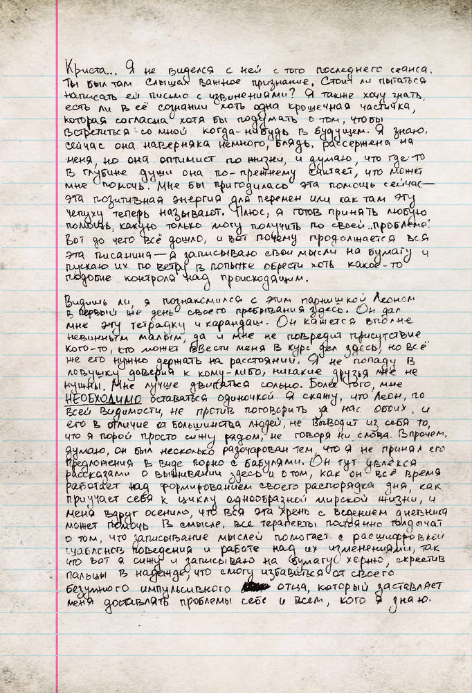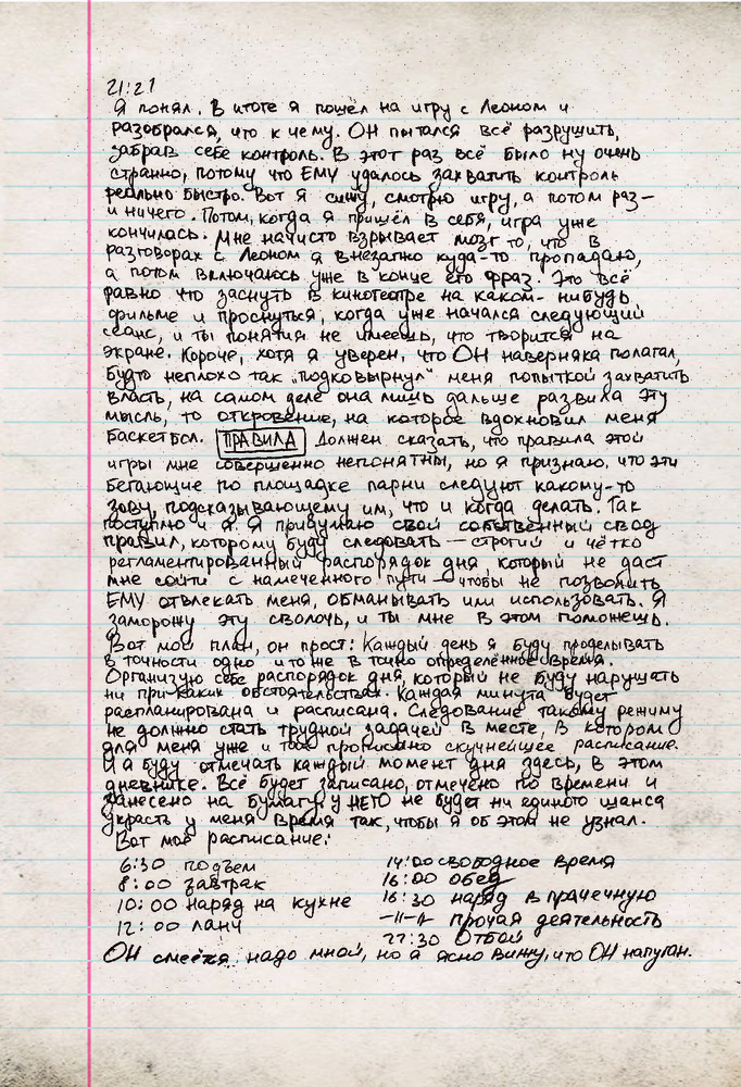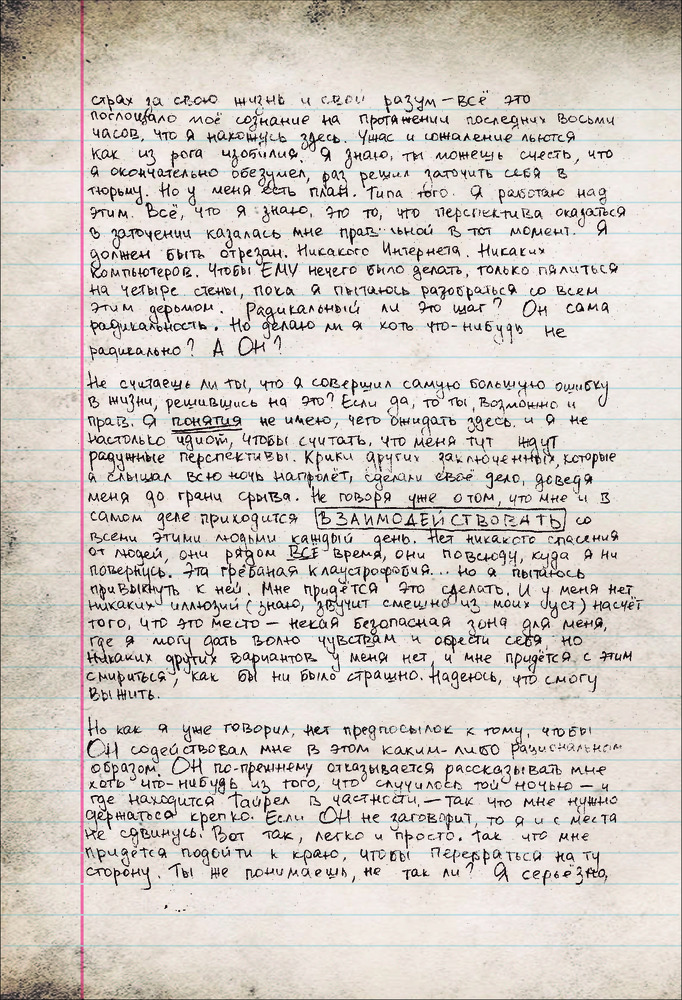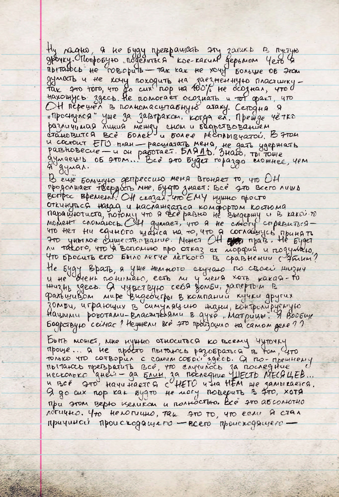 Мистер Робот: я безумен, но мой дневник не вретВ данный момент этот товар отсутствует в продаже. Возможно, у нас найдется аналогичный или похожий товар здесь. Серия: Книги, которые все ждали Меня зовут Эллиот Алдерсон. Я бросил дневник в огонь, чтобы никто не узнал правду обо мне... но ты нашел его... Впрочем, мне все равно нужно с кем-то поговорить... ЗАМОЛЧИ ЗАМОЛЧИ ЗАМОЛЧИ ЗАМОЛЧИ ЗАМОЛЧИ Слышишь меня? Я не хочу никому лгать. Я написал об Evil Corp, о Карле, о Тайреле — обо всех. Все, что я думаю о них, о себе. И о НЕМ. ХВАТИТ БЫТЬ РАБОМ, ХВАТИТ СЛЕДОВАТЬ ЗА СТАДОМ Ты думаешь, я слетел с катушек? У меня новость — я давно не в себе. |