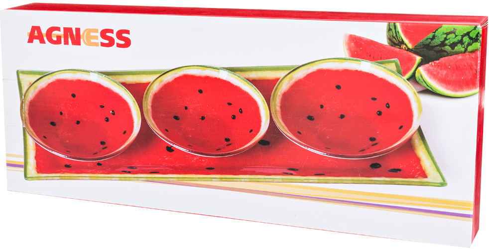 Agness Набор для закусокВ данный момент этот товар отсутствует в продаже. Возможно, у нас найдется аналогичный или похожий товар здесь. Стильный набор салатников диаметром 12 см на блюде, которые предназначены для подачи закусок. Без закусок трудно представить праздничную вечеринку, банкет или дружеские посиделки, ведь их главное назначение — повысить аппетит и как можно дольше удерживать гостей за столом. Поэтому закуски должны быть не только вкусными — их следует красиво оформить и подать в «правильной» посуде, радующей глаз. |