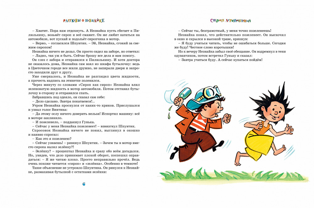 Книжка в красивом прочном переплёте. Включает несколько рассказов о Незнайке. Рассказы интересные, весёлые. Рисунки цветные, их много, они великолепные. Незнайка нарисован таким, как в классических его изображениях. Книжка заслуживает самых высоких похвал.