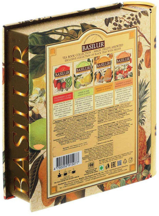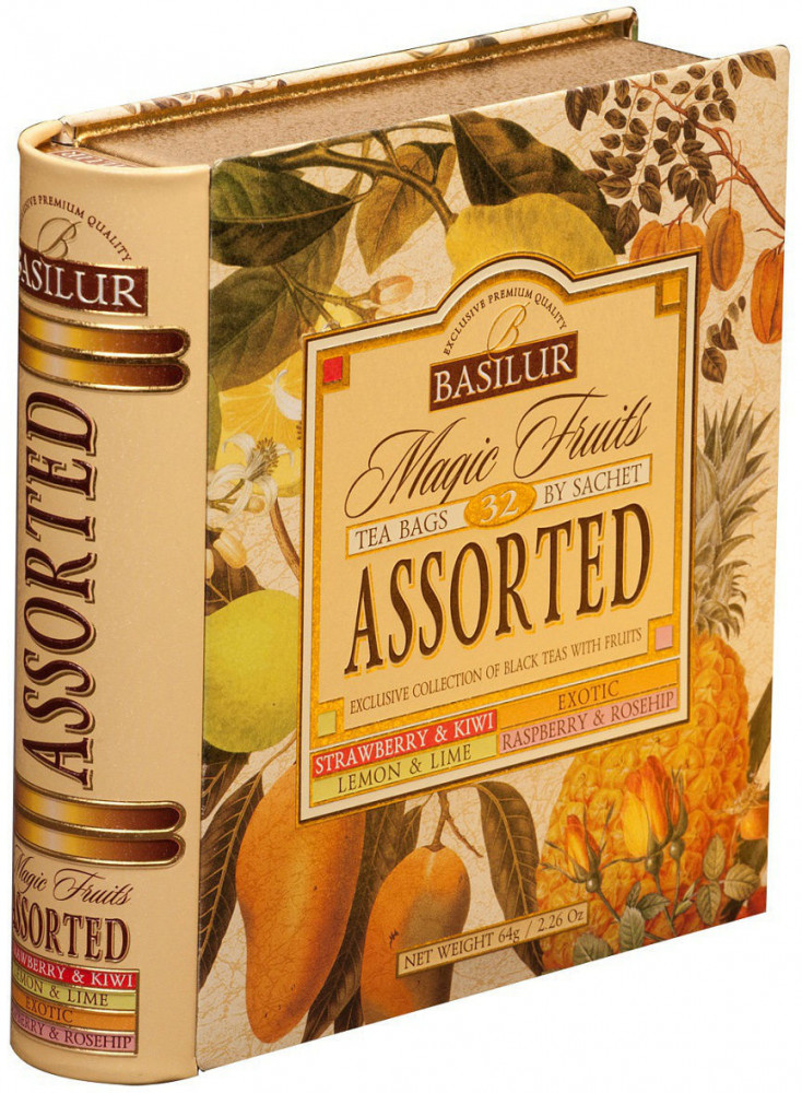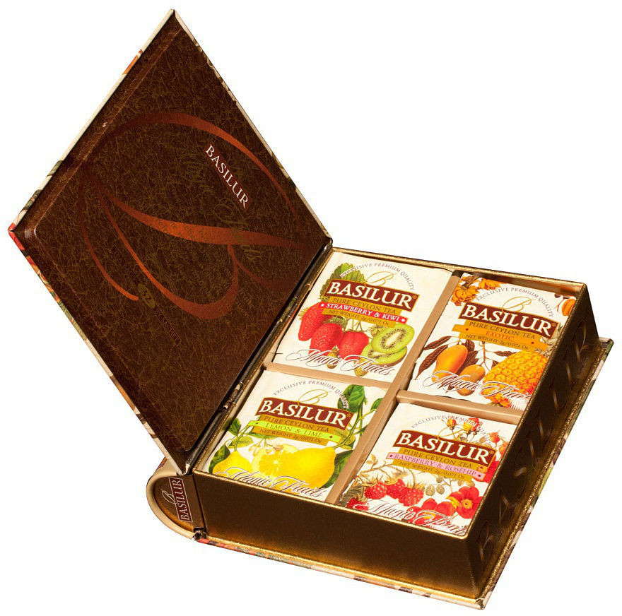 Basilur Чай пакетированный «Ассорти»В данный момент этот товар отсутствует в продаже. Возможно, у нас найдется аналогичный или похожий товар здесь. Серия: Волшебные фрукты Чайная книга с пакетированным цейлонским чаем. Содержит 4 вида чая по 8 пакетиков с фруктами на любой вкус. |