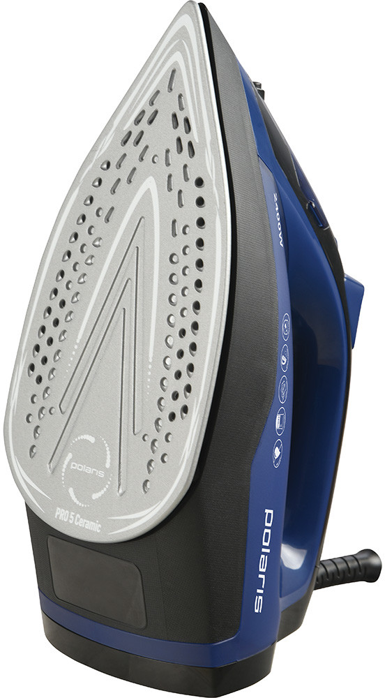 Утюг Polaris PIR 2481K с покрытием подошвы PRO 5 Ceramic. Улучшенная антикапельная система. Система предотвращения образования накипи. Функция самоочистки. Плавная регулировка подачи пара и регулировка температуры. Индикатор нагрева утюга. Устройство распыления воды.