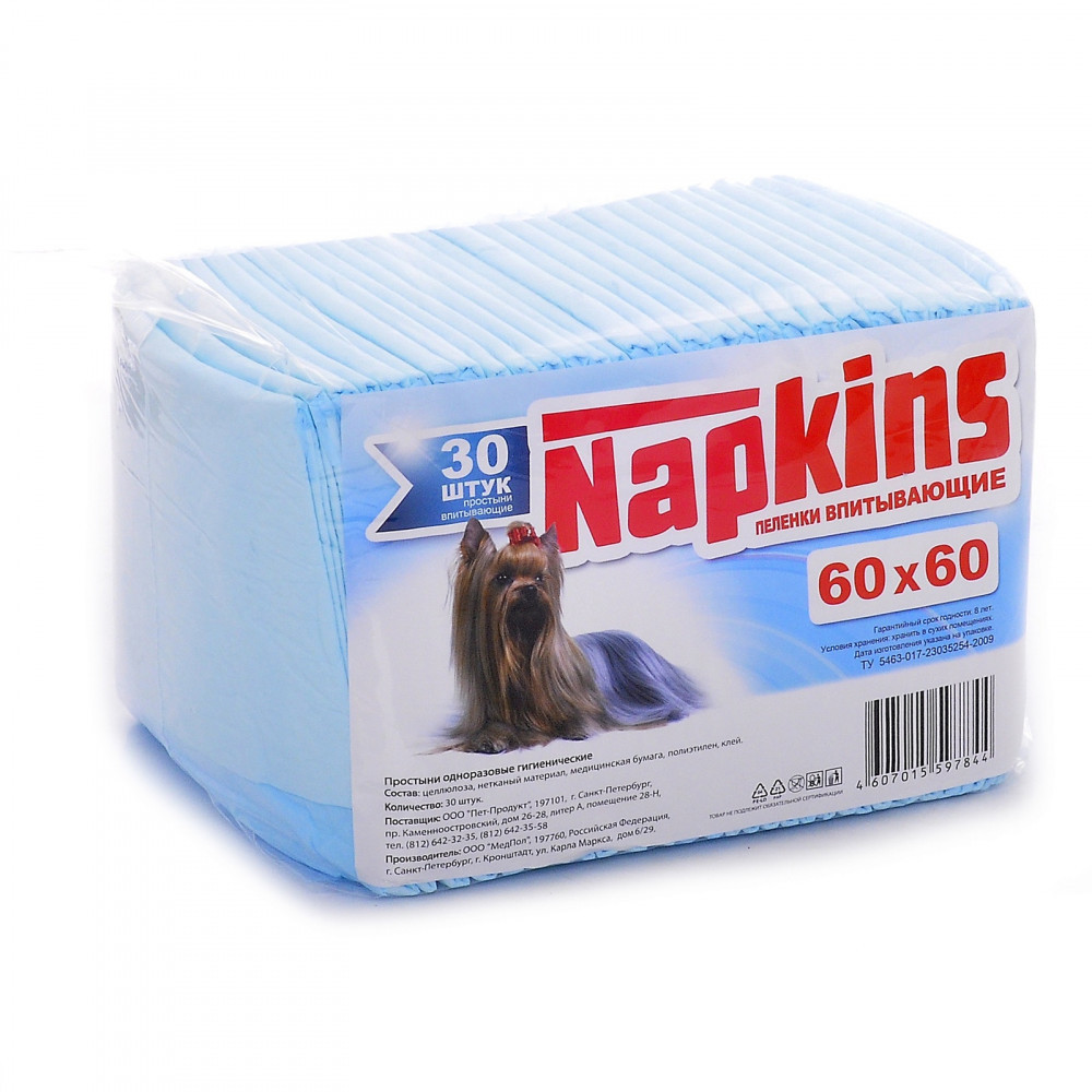 | Napkins Впитывающие пеленки для собак (60×60 см, 30 шт)