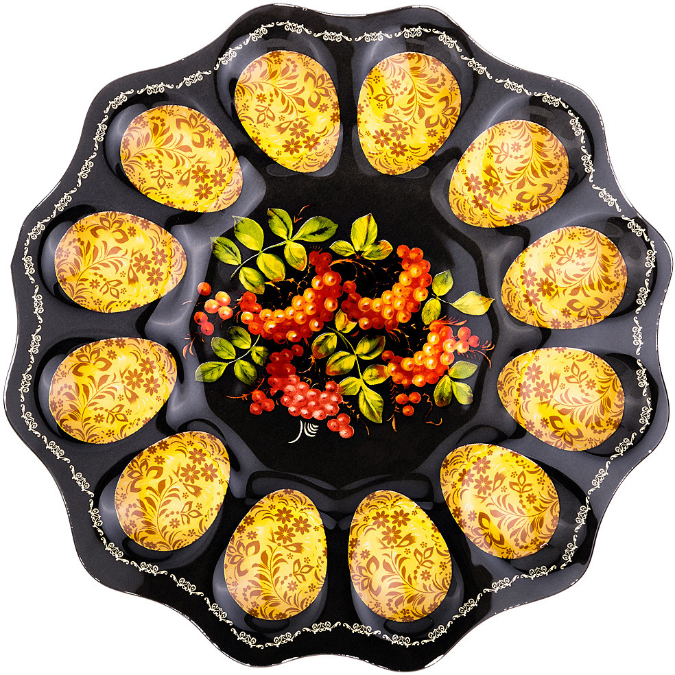 Lefard Тарелка для яицВ данный момент этот товар отсутствует в продаже. Возможно, у нас найдется аналогичный или похожий товар здесь. Тарелка для фаршированных яиц, изготовленная из высококачественного стекла, украсит Ваш праздничный стол. На изделии имеются специальные углубления для 12 яиц. Тарелка оформлена ярким рисунком. |