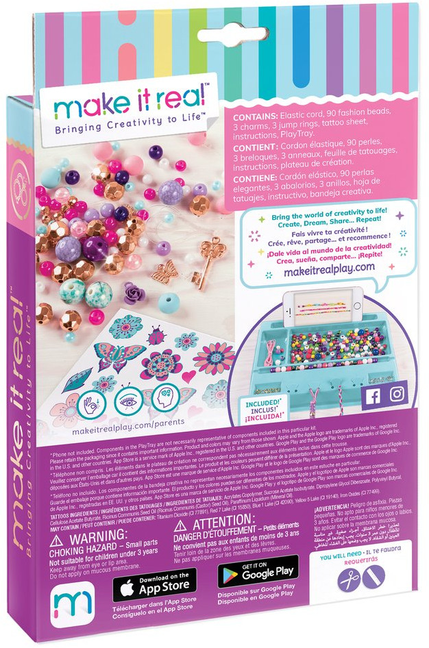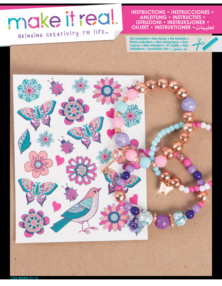 Make it real Набор для создания браслетов с татуировками «Цветы»+102 разнообразные бусины нормальная резинка мало фурнитуры