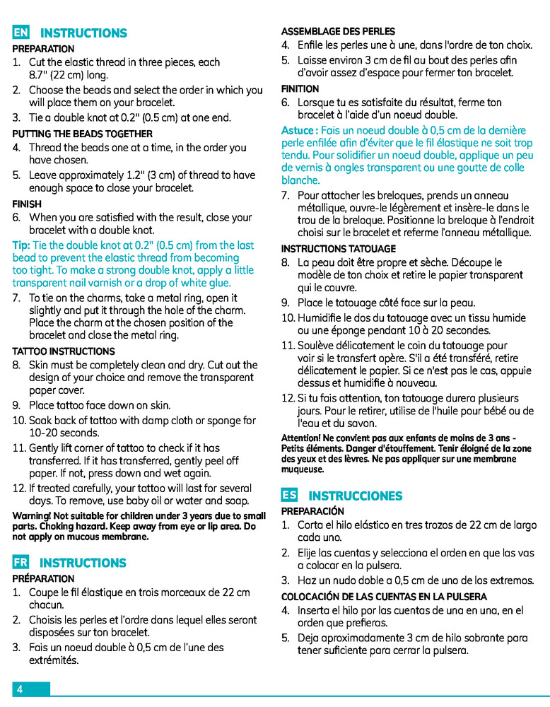 Дочка была бесконечно счастлива нанизывать сама бусинки и подвески. Единственное но, я не знаю, как закрепить узелок так, чтобы он не развязался при носке браслета. Это не недостаток набора, а нехватка опыта.