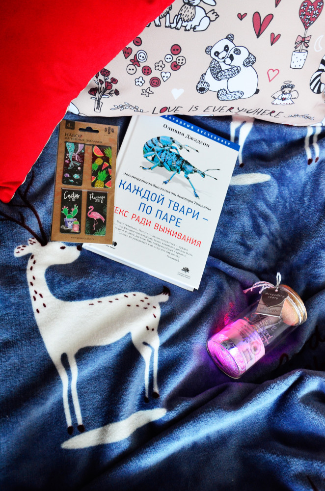 Отличный плед - мягкий и тёплый, невесомый! Красивый приглушенный серо-синий оттенок(На фото немного ярче, чем есть получился). Книга, подушечка и закладки тоже от Флип.кз))) Очень довольна, спасибо!