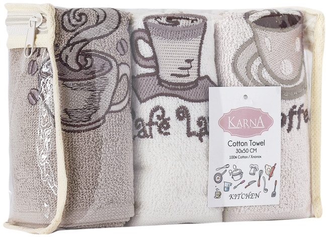 Karna, Турция. Стильная расцветка и оригинальная вышивка для кухонных полотенец. Качество отменное! Упаковку можно использовать как косметичку или пенал.