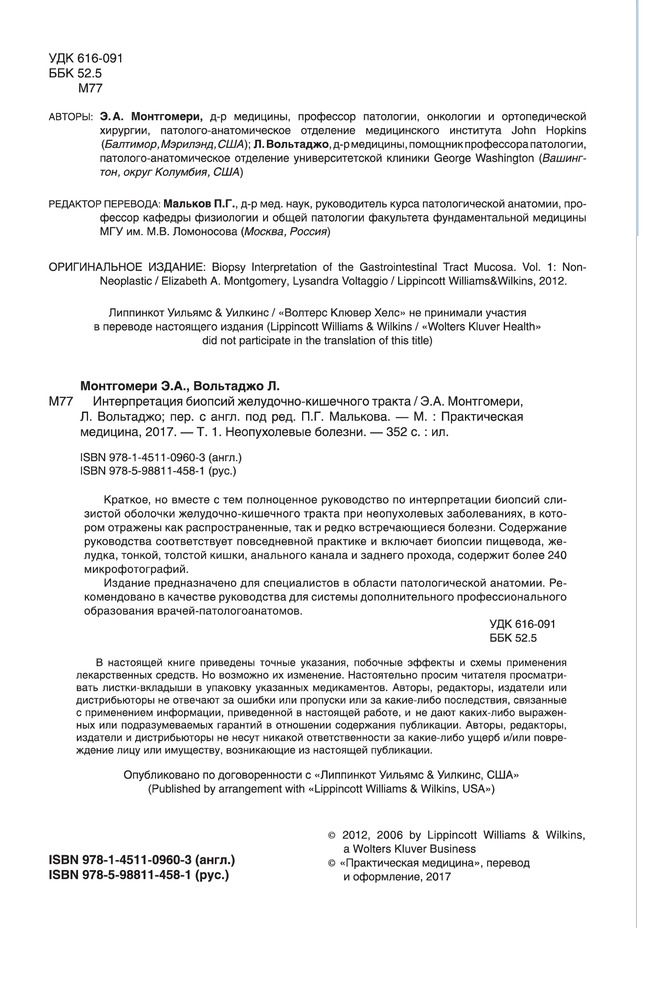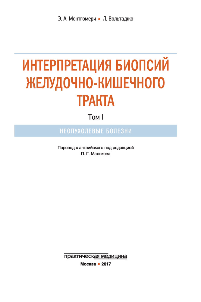 Интерпретация биопсий желудочно-кишечного тракта. Руководство. Том 1. Неопухолевые болезниЭлисабет А. Монтгомери, Лизандра Вольтаджо В данный момент этот товар отсутствует в продаже. Возможно, у нас найдется аналогичный или похожий товар здесь. Краткое, но вместе с тем полноценное руководство по интерпретации биопсий слизистой оболочки желудочно-кишечного тракта при неопухолевых заболеваниях, в котором отражены как распространенные, так и редко встречающиеся болезни. Содержание руководства соответствует повседневной практике и включает биопсии пищевода, желудка, тонкой, толстой кишки, анального канала и заднего прохода, содержит более 240 микрофотографий. |