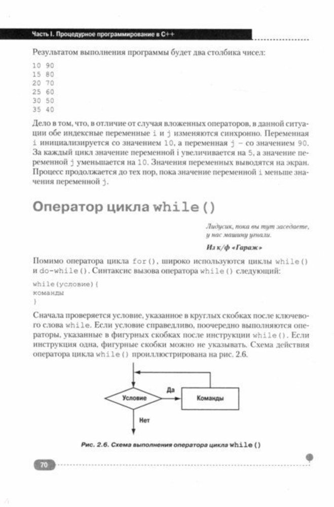 💳 Оплатить за товар можно при получении 🇰🇿 Есть бесплатная доставка по Казахстану от 1 дня 🎁 Копите бонусы с каждой покупки Серия: Самоучитель Данная книга является шестым изданием превосходного и эффективного учебного пособия, предназначенного для изучения языка программирования C++ с нуля и удовлетворяющего самым последним стандартам (C++ 17 и C++ 20). Книга задумывалась, с одной стороны, как пособие для тех, кто самостоятельно изучает язык программирования C++, а с другой, она может восприниматься как лекционный курс с проведением практических занятий. Книга содержит полный набор сведений о синтаксисе и концепции языка C++, необходимый для успешного анализа и составления эффективных программных кодов. Материал книги излагается последовательно и сопровождается большим количеством наглядных примеров, разноплановых практических задач и детальным разбором их решений. К каждому разделу прилагается обширный список задач для самостоятельного решения, а также контрольные вопросы (ответы на которые размещены на виртуальный CD). |