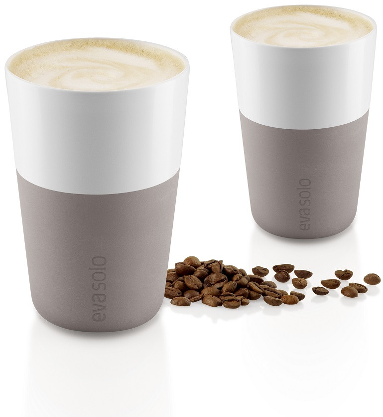 Чашки для латте от Eva Solo рассчитаны на 360 мл — классическую порцию напитка (с учетом шапки молочной пены) и стандарт для большинства кофе-машин. Изделия выполнены из фарфора, дополнены силиконовым чехлом, который легко снимается. За счет этого чашки с горячим содержимым удобно держать в руках.