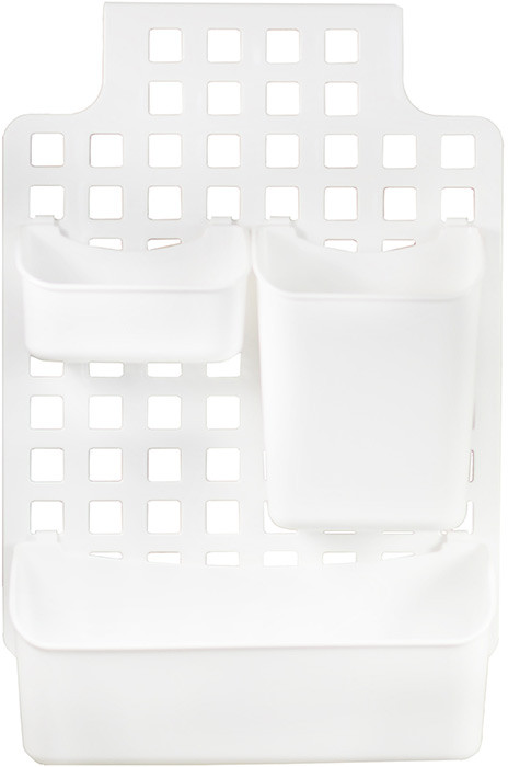 IDEA Органайзер навесной с контейнерамиВ данный момент этот товар отсутствует в продаже. Возможно, у нас найдется аналогичный или похожий товар здесь. Органайзер состоит из основы (крупной сетки) и трех контейнеров разного размера. Основа навешивается на любой кронштейн, дверцу шкафа, перегородку душа или ванной. Контейнеры крепятся на сетку в любом порядке, с помощью крючков. Контейнеры имеют отверстия на дне для просушивания. Свободные отверстия сетки можно использовать для навешивая различных предметов: щеток, мочалок. Еще одной особенностью органайзера является его форма, благодаря которой можно будет легко и быстро найти необходимую вещь. |