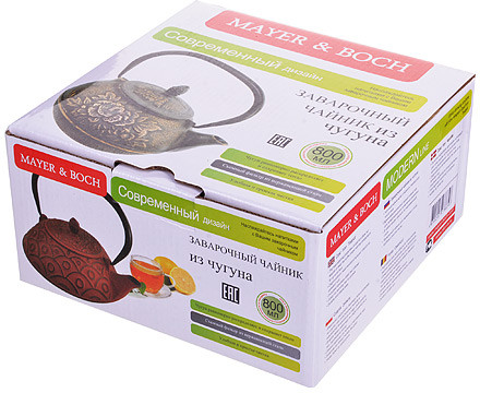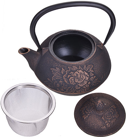Заварочный чайник изготовлен из чугуна высокого качества. Внутренняя и внешняя поверхности чайника покрыты термостойким лаком, который защищает металл от ржавчины и препятствует возникновению металлического привкуса у напитка. Размещенный внутри чайника сетчатый фильтр гарантирует прозрачность и чистоту напитка от чайных листьев. За счет равномерного распределения тепла внутри чайника, напиток получается максимально вкусным и насыщенным. Так как чугунные чайники дольше других удерживают тепло, то и вода в нем будет оставаться горячей и пригодной для заваривания чая долгое время.