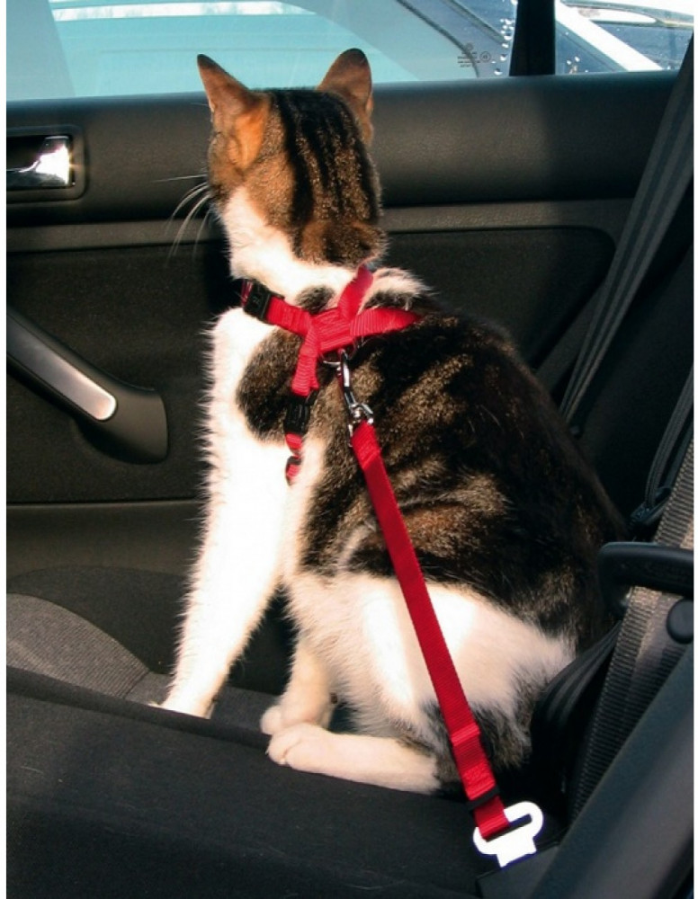Автомобильный ремень безопасности со шлейкой для кошки длиной 20-50 см. Может быть использован, как обычная шлейка. Ремень на подкладке, плавно регулируется на груди и животе, и достаточно прост в эксплуатации.