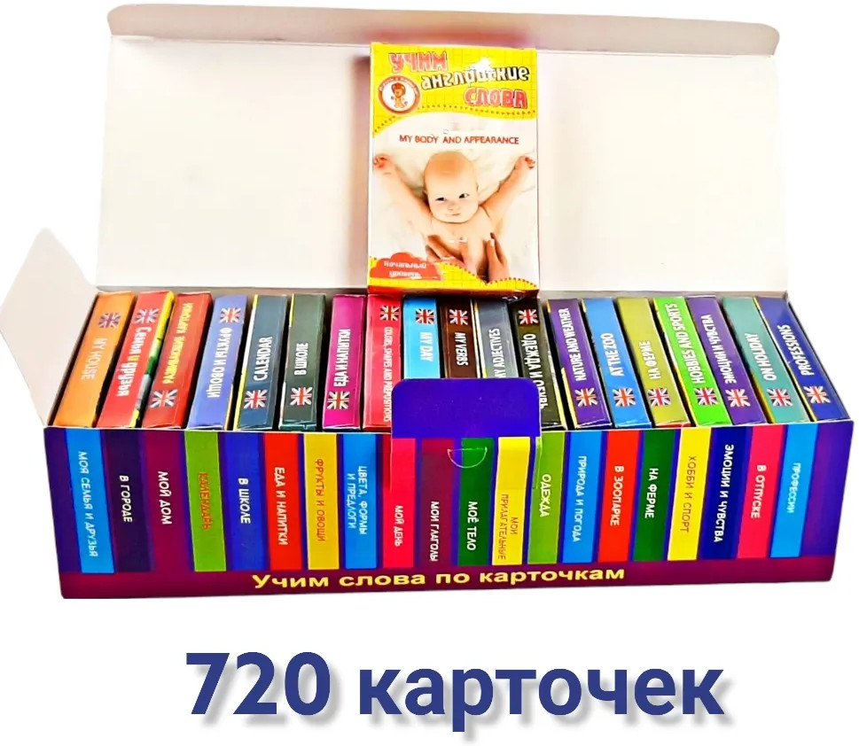 Именно то, что я искала для обучения детей. Звезду снимаю за некоторые ошибки в словах и за повторяющиеся слова, например animal или food. Коробочки для карточкек сразу же разваливаются, не критично, но неприятно.