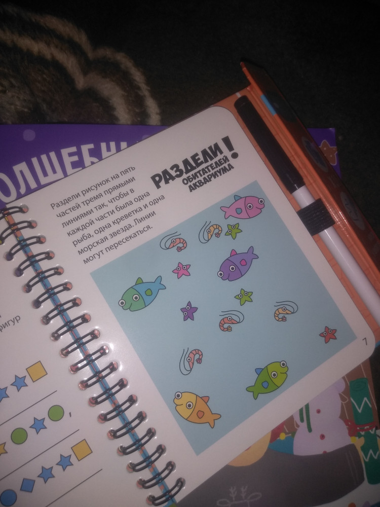 Книжка замечательная в плане развития. Но с дочерью 6 лет нужно сидеть, чтобы объяснить как что выполнять. Один минус - фломастер засохший. Дочь очень расстроилась