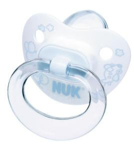 Пустышки торговой марки Nuk серии Baby Blue для сна имеют красивый нежно-голубой оттенок или фирменный рисунок бренда на белом фоне. Они выполнены в специальной ортодонтической форме, которая способствует правильному развитию детского неба. Воздушный клапан Nuk Air System впускает воздух, благодаря этому пустышка остается мягкой и эластичной, не препятствуя правильному развитию и росту зубов.