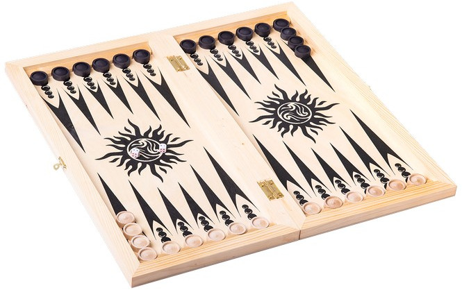 Нарды средние «Восьмигранник» — модель популярной настольной игры. В набор включено все необходимое: доска, деревянные удобные шашки и два игральных кубика (зары). Доска выполнена из фанеры с нанесением рисунка (шелкография), покрыта лаком.