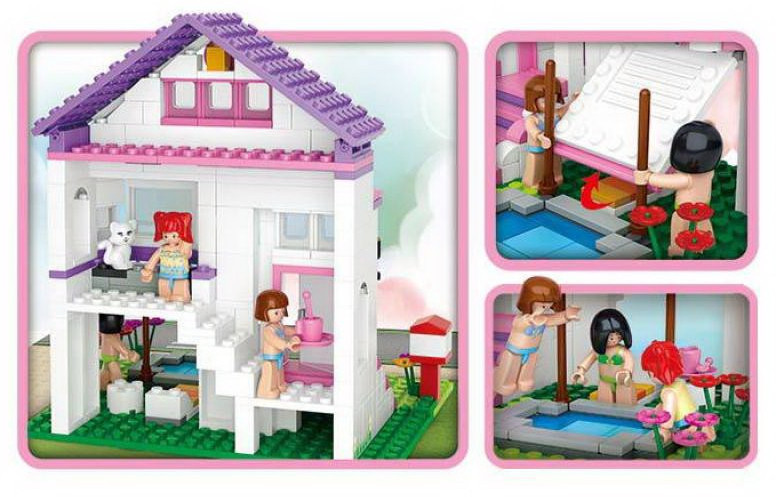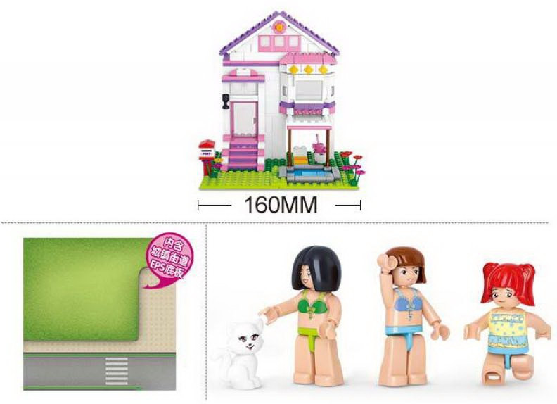 SLUBAN Конструктор «Вилла с бассейном»В данный момент этот товар отсутствует в продаже. Возможно, у нас найдется аналогичный или похожий товар здесь. Серия: Розовая мечта Конструктор для девочек позволит любимым героям понежиться на солнышке рядом с прекрасной виллой, искупаться в теплом бассейне. Все персонажи переодеты в купальные костюмы. А на вилле следит за порядком любимое домашнее животное — белая кошечка. |