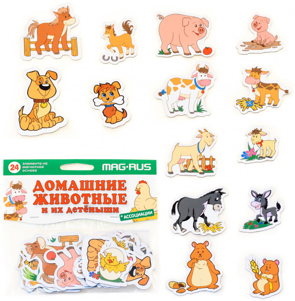Анданте Набор магнитов «Домашние животные и их детеныши» (24 магнита)В данный момент этот товар отсутствует в продаже. Возможно, у нас найдется аналогичный или похожий товар здесь. Развивающие игры на магнитах помогают расширить кругозор и ассоциативное мышление ребенка. Красочные иллюстрации магнитов привлекательны для детей. Магниты легко крепятся к гладкой металлической поверхности и удобно перемещаются по поверхности. |
