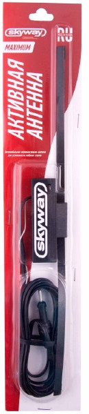 Автомобильная активная радио-антенна для установки на лобовое стекло. Основание прямоугольной формы крепится на липкий слой в удобное место на стекле. Длинный кабель более 2 метров.