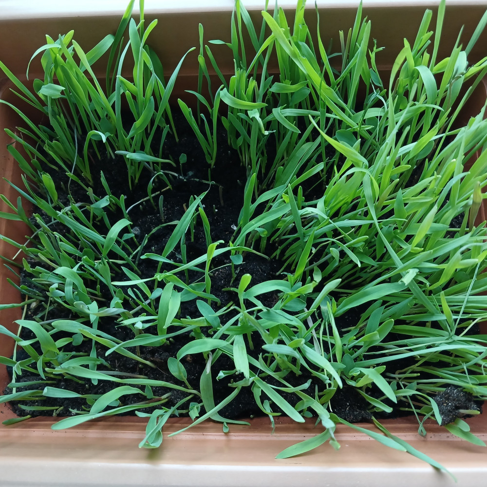 Хорошая трава для кошек (на фото неделя как посадили и уже так выросла) очень быстро всходит, быстро растёт коту вроде нравится, просто ещё не совсем понимает что ее кушать можно, но пытается)))