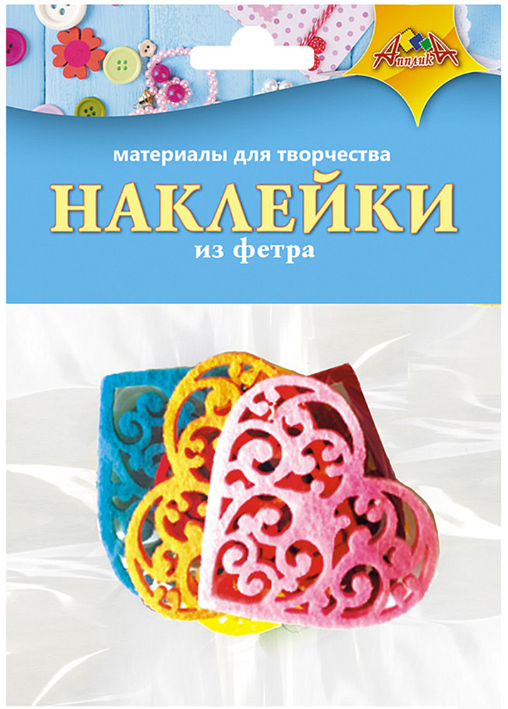 АппликА Наклейки из фетра «Сердце»В данный момент этот товар отсутствует в продаже. Возможно, у нас найдется аналогичный или похожий товар здесь. В этом наборе представлены фигуры из текстильного материала, а также вспененный полимер с двухсторонним клеевым слоем. Фетровые наклейки можно переклеивать, используя новый вспененный полимер (или двухсторонний скотч). Фигурки могут быть приклеены на гладкую ровную поверхность. Украшать ими можно открытки, скрапбук, поделки, сумки, одежду и многое другое. |