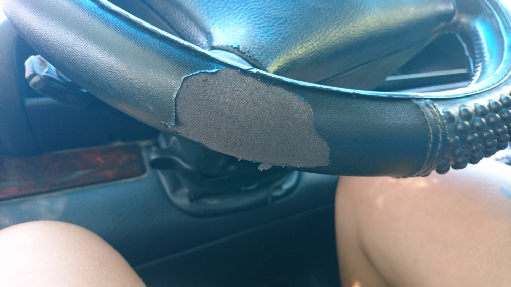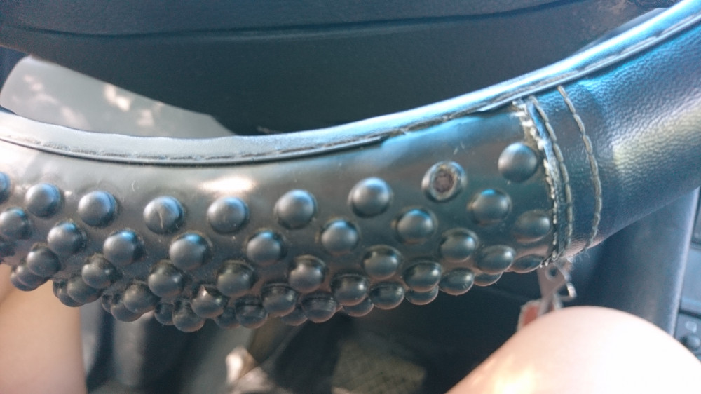 Ожидала большего. Сделан не аккуратно, нитки торчат, вмятины от массажных пупырок на гладкой поверхности. И очень тонкий, именно в объёме. Не обрамляет руль полностью. Но сидит плотно. Руки не проскальзывают, а даже чуть липнут. Это плюс.