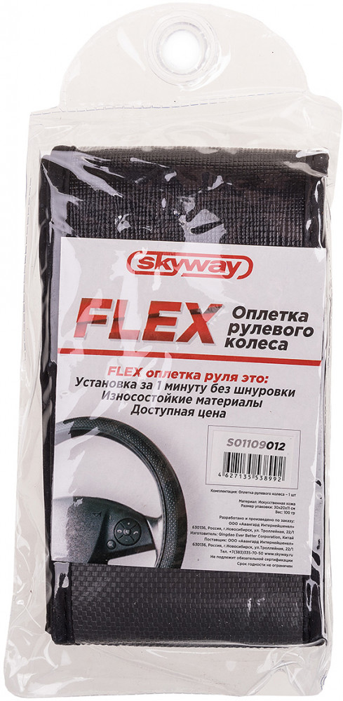 Оплетка Skyway Flex-11 обеспечивают надёжный контакт ладоней с ободом рулевого колеса. Удобная установка за 1 минуту без шнуровки. Оплетка выполнена из высококачественной экокожи, которая сохраняет привлекательный внешний вид в течение длительного времени. Она не раскаляется при воздействии солнечных лучей, а в зимнее время не холодная на ощупь. Применение инновационных материалов на внутренней стороне оплетки исключает ее проскальзывание на руле.