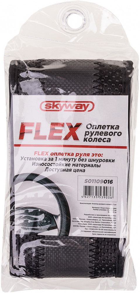 Оплетка Skyway Flex-15 обеспечивают надёжный контакт ладоней с ободом рулевого колеса. Удобная установка за 1 минуту без шнуровки. Оплетка выполнена из высококачественной экокожи, которая сохраняет привлекательный внешний вид в течение длительного времени. Она не раскаляется при воздействии солнечных лучей, а в зимнее время не холодная на ощупь. Применение инновационных материалов на внутренней стороне оплетки исключает ее проскальзывание на руле.