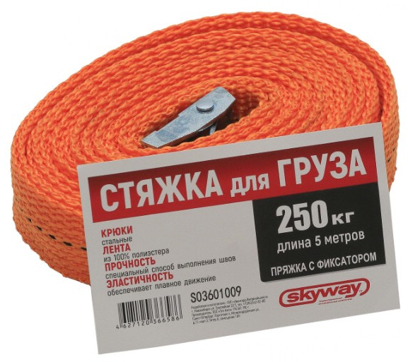Skyway Стяжка груза (пряжка с фиксатором)В данный момент этот товар отсутствует в продаже. Возможно, у нас найдется аналогичный или похожий товар здесь. Приспособление используется для транспортировки груза на различные расстояния. Специальный способ выполнения швов обеспеичвает прочность ленты, а эластичный материал способствует плавному движению во время работы. Стяжка груза имеет храповый механизм с зубцами, надежно фиксирующий груз. Лента стяжки износостойкая, малорастяжимая и очень прочная. Она не треснет при низких температурах и не боится влаги. |