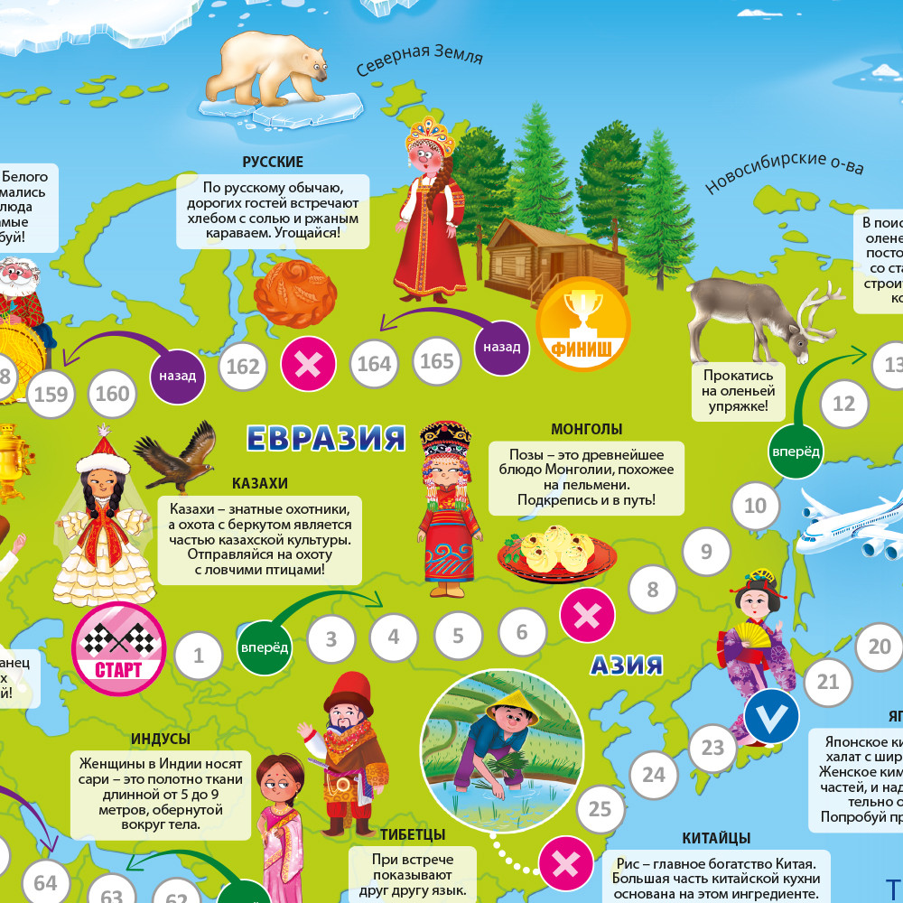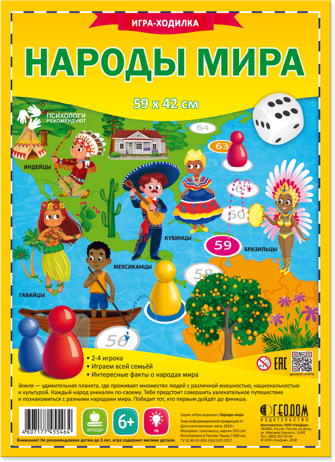 Игра-ходилка «Народы мира»В данный момент этот товар отсутствует в продаже. Возможно, у нас найдется аналогичный или похожий товар здесь. Земля — удивительная планета, где проживает множество людей с различной внешностью, национальностью и культурой. Каждый народ уникален по-своему. Тебе предстоит совершить увлекательное путешествие и познакомиться с разными народами мира. Победит тот, кто первым дойдёт до финиша. |