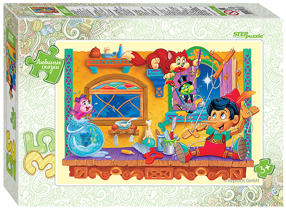 Пазл «Пиноккио» состоит из 35 деталей и входит в серию «Любимые сказки». На картинке изображен сам мальчик с длинным носом и другие персонажи этой волшебной истории. Кажется, в столярной мастерской затевается что-то интересное...